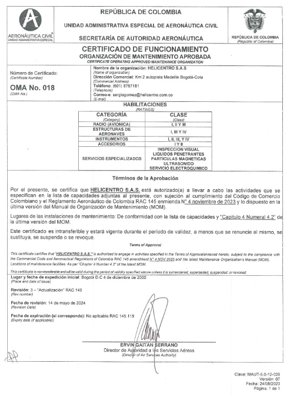 Las presentes especificaciones de operación, se expiden de conformidad con las normas de funcionamiento del TAR HELICENTRO S.A.S. y con los reglamentos aeronáuticos de Colombia (R.A.C.)